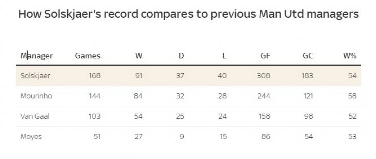 Ole Gunnar Solskjaer memang manajer yang paling dimanjakan oleh Manchester United dengan mendapatkan13 pemain rekrutan baru senilai 441 juta poundsterling. Jose Mourinho saat kepemimpinannya mendapatkan 12 pemain rekrutan baru senilai 430 juta poundsterling. Sedangkan Van Gaal medapatkan 13 pemain rekrutan baru dengan nilai 309 juta poundsterling, dan David Moyes hanya mendapatkan 2 pemain rekrutan baru dengan nilai 69 juta poundsterling.