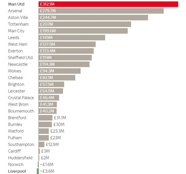 Terhitung pada Liga Premier, pengeluaran biaya Manchester United dalam arahan Solskjaer sudah menghabiskan dana 312 juta poundsterling pada bursa transfer pemain. Nilai pengeluaran yang lebih besar dibandingkan dengan total gabungan pengeluaran Manchester City dan Liverpool sebesar 196 juta poundsterling. Meskipun Arsenal juga memiliki nilai pengeluaran yang juga besar yaitu sebesar 279 juta poundsterling. Diikuti oleh pengeluaran Aston Villa sebesar 244 juta poundsterling, dan pengeluaran Tottenham Hotspur sebesar 207 juta poundsterling.