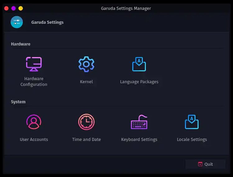 Menggunakan sistem operasi baik Windows dan Mac OS mungkin sudah biasa melihat manajemen driver dan perangkat menggunakan GUI (Graphic User Interface). Namun untuk pengguna Linux hanya distro Arch ini yang memiliki GUI untuk mengatur seperti driver mouse, flash disk, printer dan perangkat lainnya. Garuda Linux OS menawarkan hal ini pada sistem operasinya. Kemajuan untuk kemudahan penggunaan sistem operasi Linux.