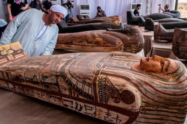 Setidaknya 59 sarkofagus, dengan mumi di dalamnya, ditemukan awal tahun ini selama penggalian di Saqqara, yang terletak di selatan Kairo.